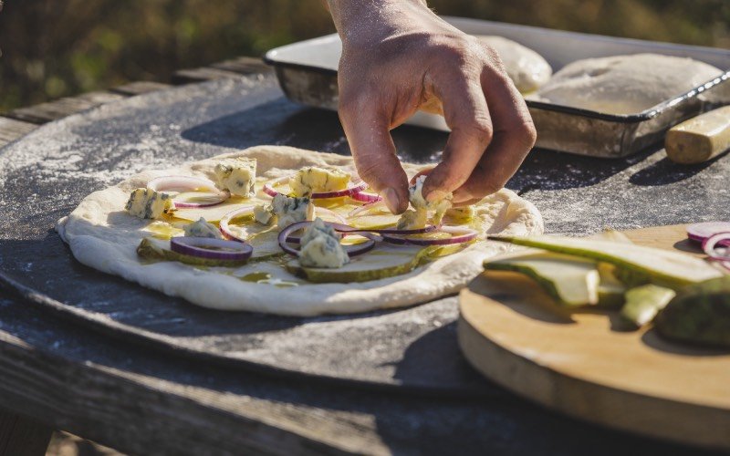 • Pizza dough for 4 small pizzas (for the exact ingredients, check out our pizza dough calculator)