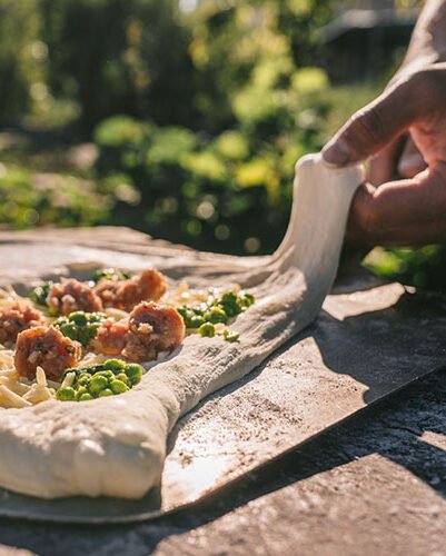Begin by firing up your outdoor oven to about 450°C (842°F). Make sure you have your pizza dough balls at room temperature. I recommend using a Neapolitan pizza dough for this recipe. Click here to make (Neapolitan) pizza dough.