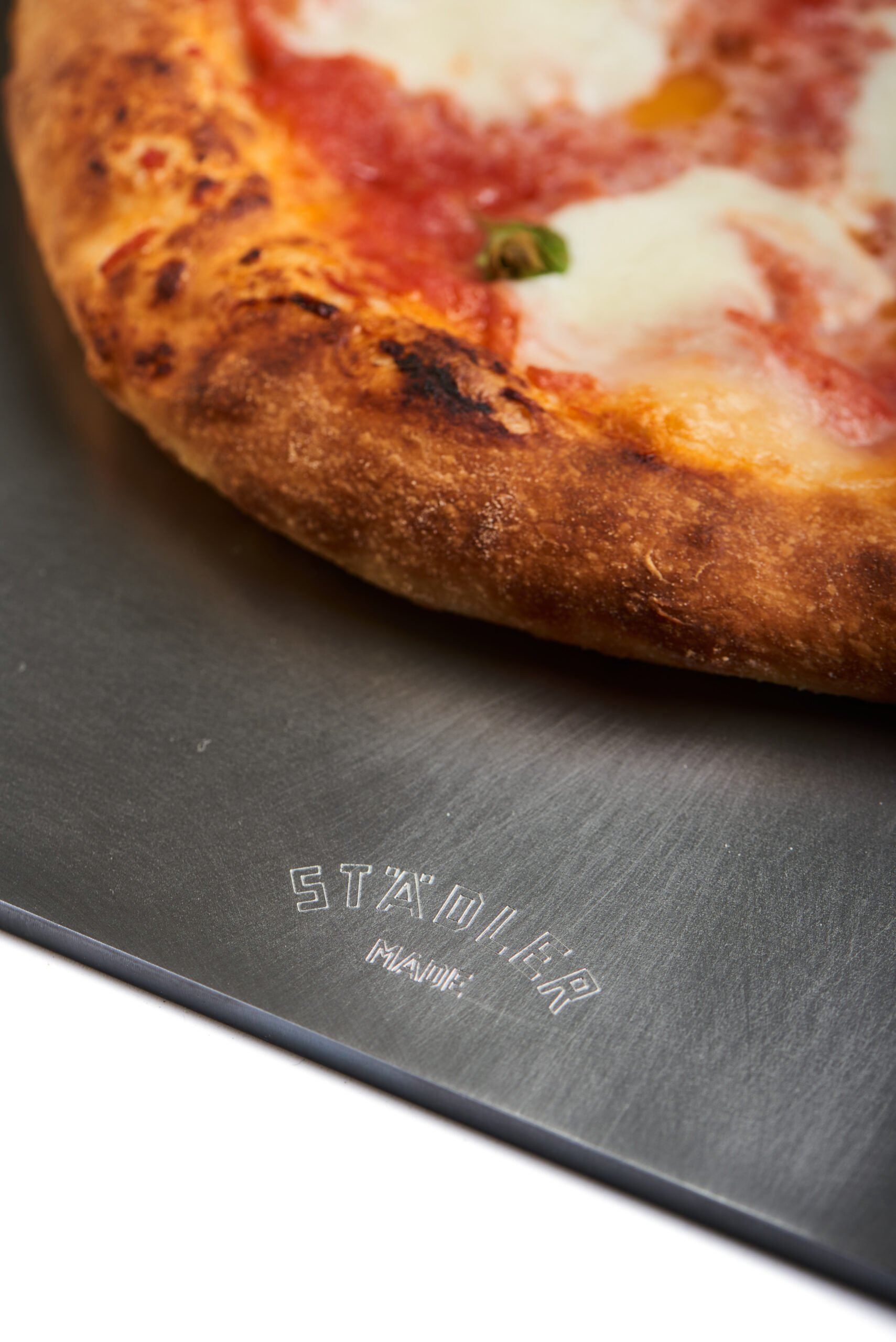 Stone and steel both work like a thermal battery, but steel has the advantage of being a better conductor. This means that when you put your pizza on top, it will release its heat faster than a stone would, resulting in a browner, crunchier pizza base.