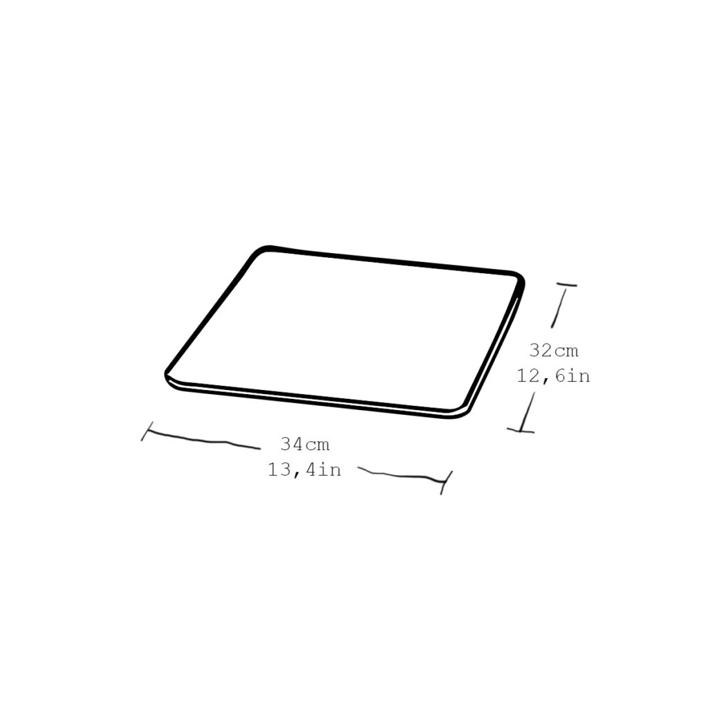 The Pizza Steel is 34cm (13.4”) wide, 32cm (12.6”) long and 6mm (0.2”) thick.